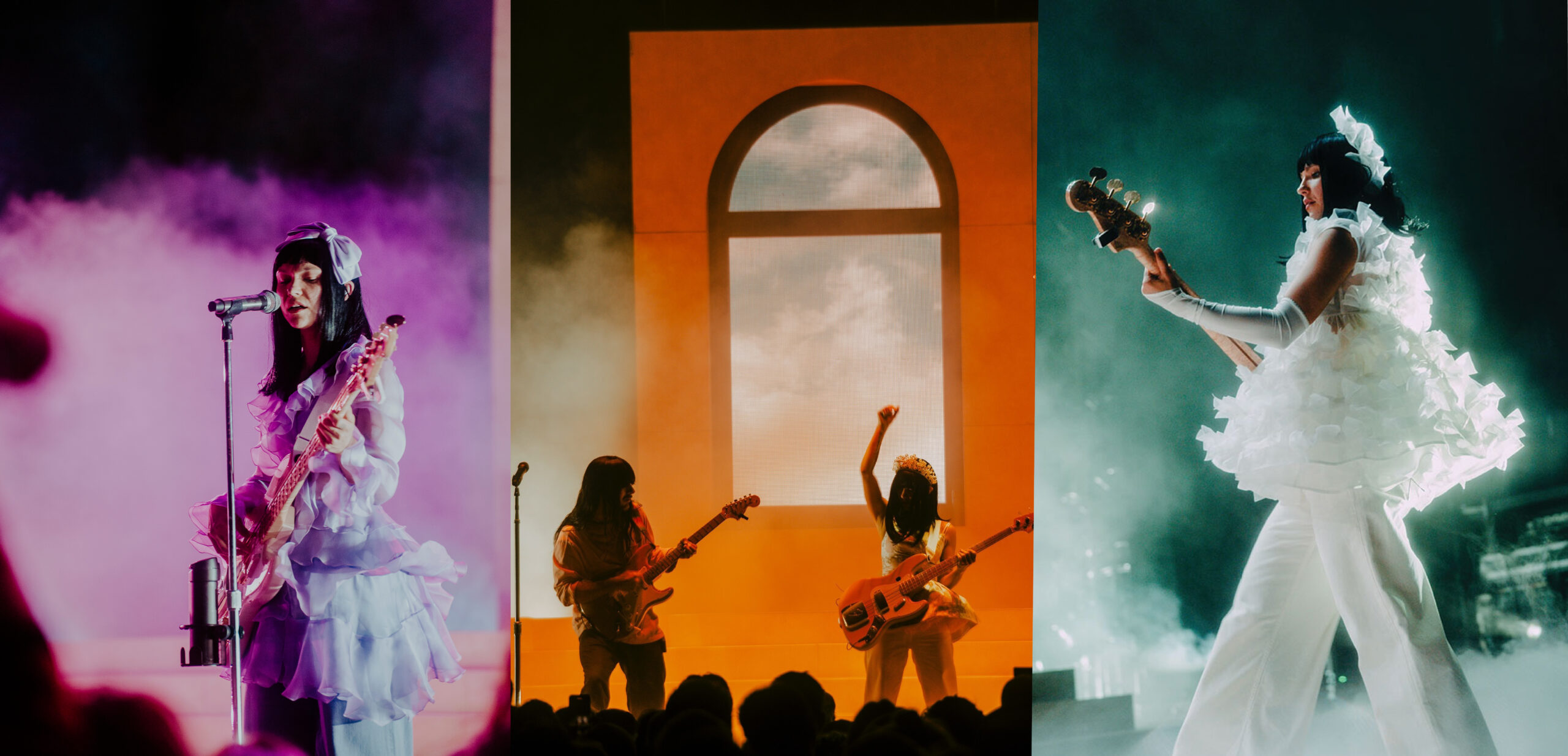 I’m not. For those familiar with Khruangbin’s music, the Grammy nod comes as no surprise. The band possesses the ability to transport listeners to another place entirely – fitting, given their name translates to “aeroplane” in Thai. Their atmospheric sound, an intricate collage of global subgenres, creates an immersive listening experience that is both unique and familiar. It seems every detail – from the music itself to the album art – is meticulously curated and considered. Laura’s approach to her tour fashion is no exception.